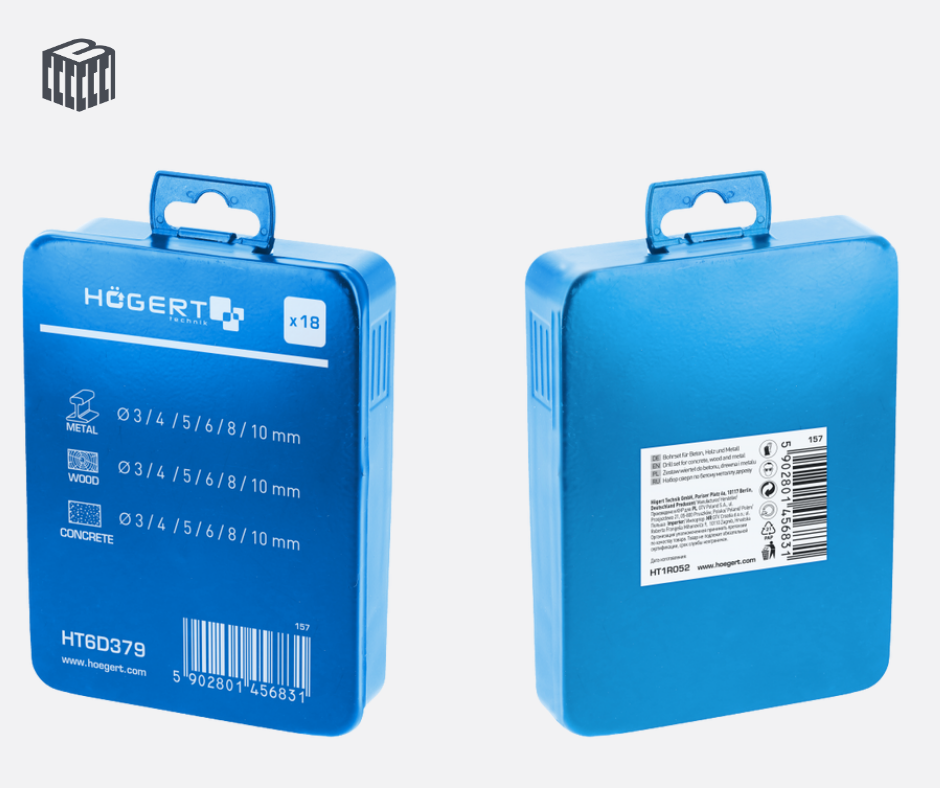 HT6D379 ბეტონის ხის და მეტალის ბურღების ნაკრები 18 ცალი